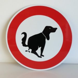 ROND EN ALUMINIUM PLAT : 2 MM, DIAMETRE : 300 mm, « DEJECTIONS ANIMALES INTERDITES »