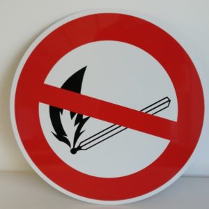 ROND EN ALUMINIUM PLAT : 2 MM, DIAMETRE : 400 mm, « FEUX OUVERT INTERDIT »