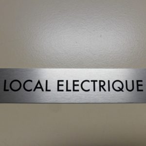 PLAQUETTE OPTIQUE INOX 180x40x1 mm „LOCAL ELECTRIQUE“
