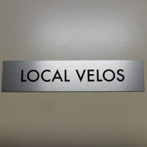 PLAQUETTE OPTIQUE INOX 180x40x1 mm „LOCAL VELOS“