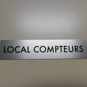 PLAQUETTE OPTIQUE INOX 180x40x1 mm „LOCAL COMPTEURS“
