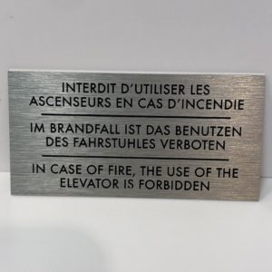 PLAQUETTE OPTIQUE INOX 80x40x1mm „ASCENSEUR/FAHRSTUHL“