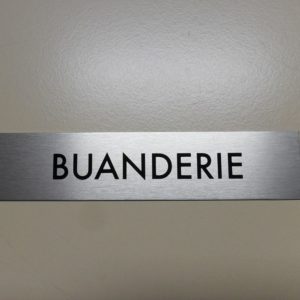 PLAQUETTE OPTIQUE INOX 180x40x1 mm „BUANDERIE“