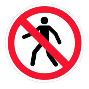 AUTOCOLLANT ROND 100 mm „INTERDIT AUX PIETONS“