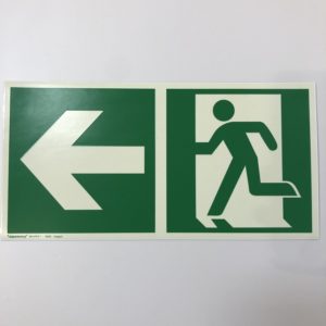 AUTOCOLLANT PHOSPHOR. 297 x 148 mm, „SORTIE DE SECOURS BAS GAUCHE“