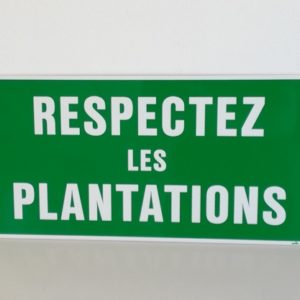 • RECTANGLE EN ALUMINIUM PLAT : 2 MM, DIMENSIONS: 410 x 200 MM, "RESPECTEZ LES PLANTATIONS" 1 × 20.70 €