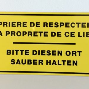 • RECTANGLE EN ALUMINIUM PLAT : 1,5 MM, DIMENSIONS: 200 x 100 MM, "RESPECTER LA PROPRETE DE CE LIEU" 1 × 11.20 €