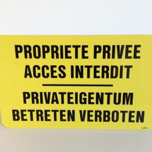 RECTANGLE EN ALUMINIUM PLAT : 2 MM, DIMENSIONS: 410 x 250 MM, „PROPRIETE PRIVEE / ACCES INTERDIT“