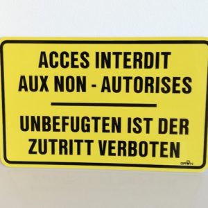 RECTANGLE EN ALUMINIUM PLAT : 1,5 MM, DIMENSIONS: 200 x 125 MM, „ACCES INTERDIT AUX NON-AUTORISES“