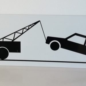 RECTANGLE EN ALUMINIUM PLAT : 2 MM, DIMENSIONS: 320 x 400 MM, „NO PARKING + DEPANNEUSE“