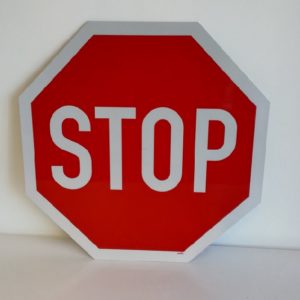 OCTOGON. EN ALUMINIUM PLAT : 2 MM, DIMENSIONS : 500 x 500 mm, „S T O P – B,2A“