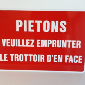 RECTANGLE EN ALUMINIUM PLAT : 2 MM, DIMENSIONS: 500 x 350 MM, „PIETONS……..etc..“