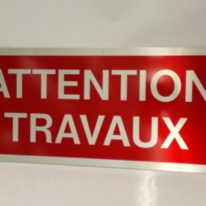 • RECTANGLE EN ALUMINIUM PLAT : 2 MM, DIMENSIONS: 650 x 300 MM, "ATTENTION TRAVAUX" 1 × 50.50 €