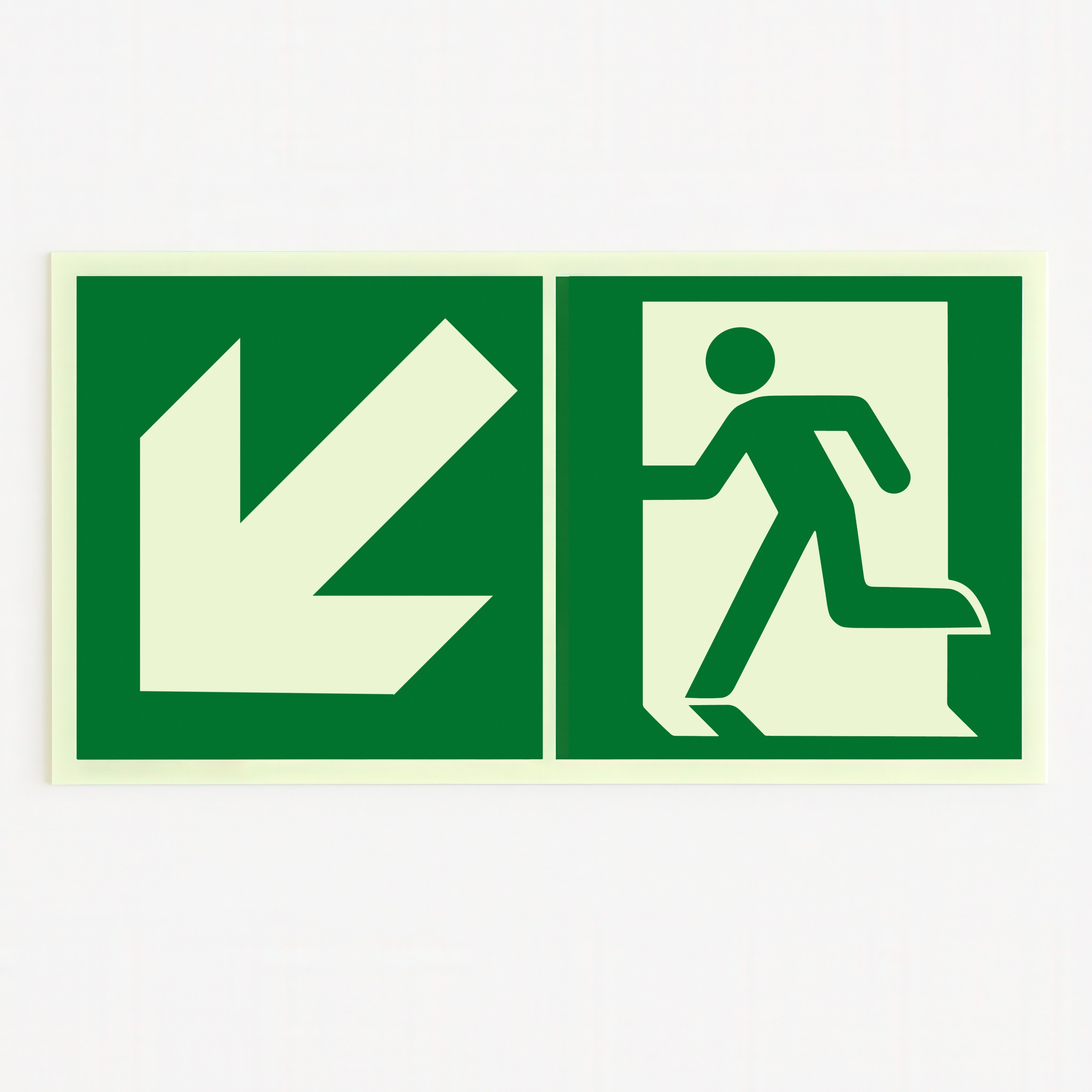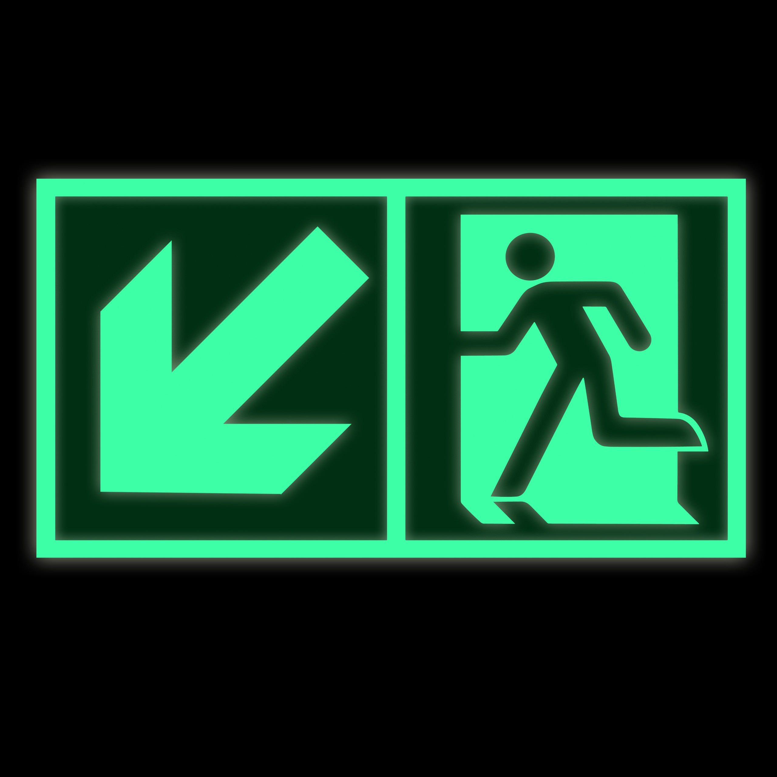 RECTANGLE EN ALUMINIUM : 0,8 MM, PHOSPHOR. DIMENSIONS: 300 x 150 mm, „SORTIE DE SECOURS BAS GAUCHE“