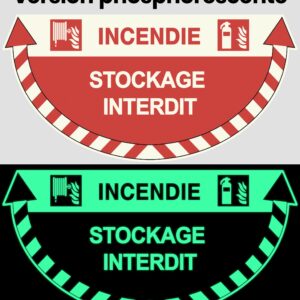 AUTOCOLLANT “STOCKAGE INTERDIT” “INCENDIE” PHOTOLUMINESCENT 700 x 350 mm