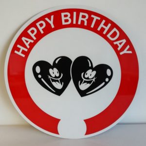 ROND EN ALUMINIUM PLAT : 2 MM, DIAMETRE : 400 mm, HAPPY BIRTHDAY “COEUR”