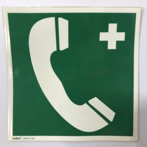 AUTOCOLLANT PHOSPHOR. 150 x 150 mm, “TELEPHONE DE SECOURS”