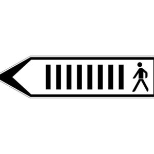 FLECHE EN ALUMINIUM TRAITE, EP 3 mm, Dimensions 1000 x 264 mm, PICTO PASSAGE PIETON VERS LA GAUCHE