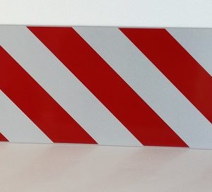 RECTANGLE EN ALUMINIUM PLAT : 2 MM, DIMENSIONS: 500 x 150 MM, “BANDES ROUGE/BLANC “
