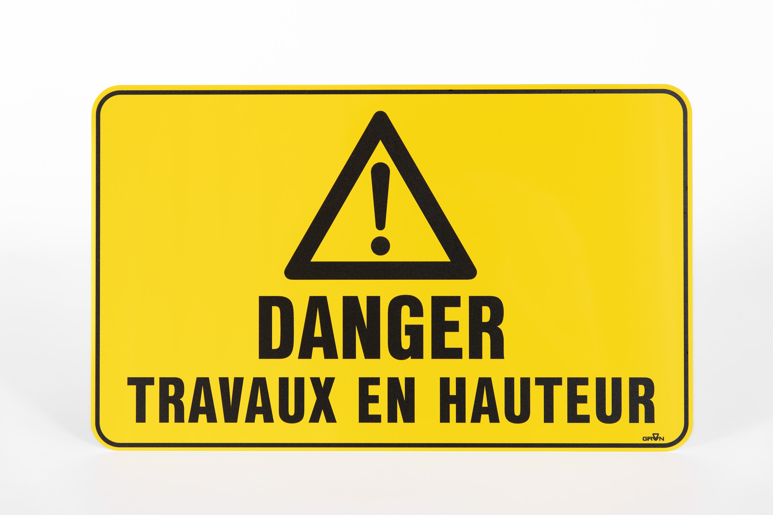 RECTANGLE EN ALUMINIUM PLAT JAUNE : 2 MM, DIMENSIONS: 410 x 250 MM,R20 MM “DANGER TRAVAUX EN HAUTEUR”